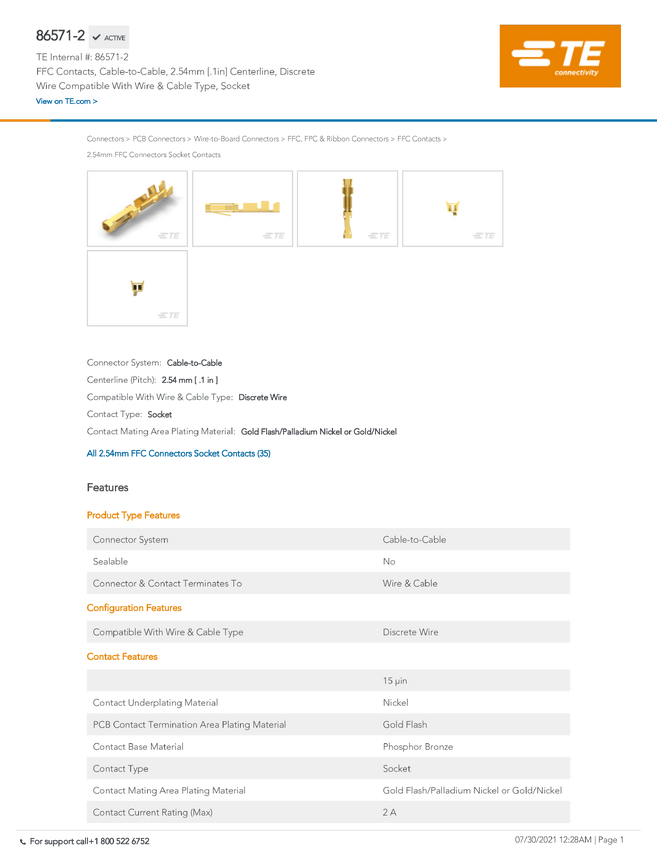 TE Connectivity 86571-2 TE AMP FFC & FEC CONNECTOR AND ACCESSORIES, 1 szt.