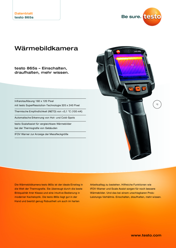Kamera termowizyjna testo 865s 160 x 120 Pixel -20 do +280 °C Kalibracja (ISO)