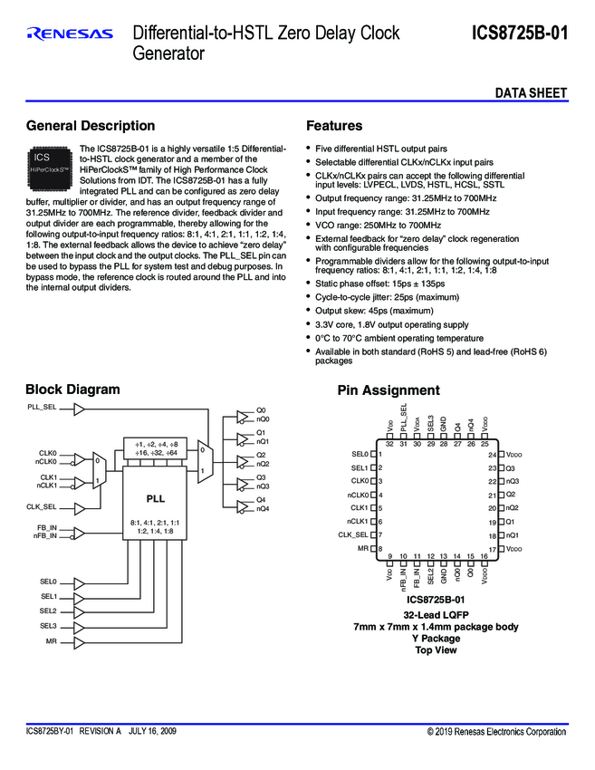 Differential to HSTL Zero Delay Buffer Clock Generator