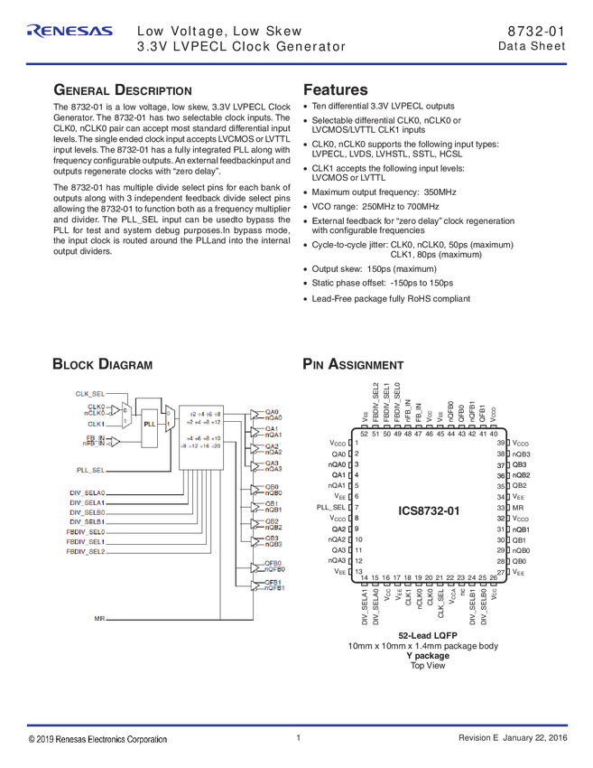 Low Skew, ÷1/÷2,3.3V LVPECL /ECLClock Generator