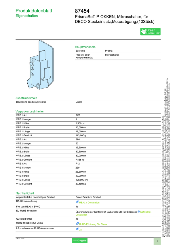 Schneider Electric 87454 Mikroprzełącznik 1 szt.
