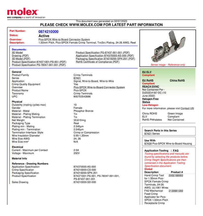 Molex Styk zaciskany 874210100 1 szt.
