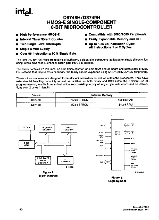 M8048 & EPROM 8748HD patrz D8749 i P8749 ROM 1k x 8; RAM 64 x8