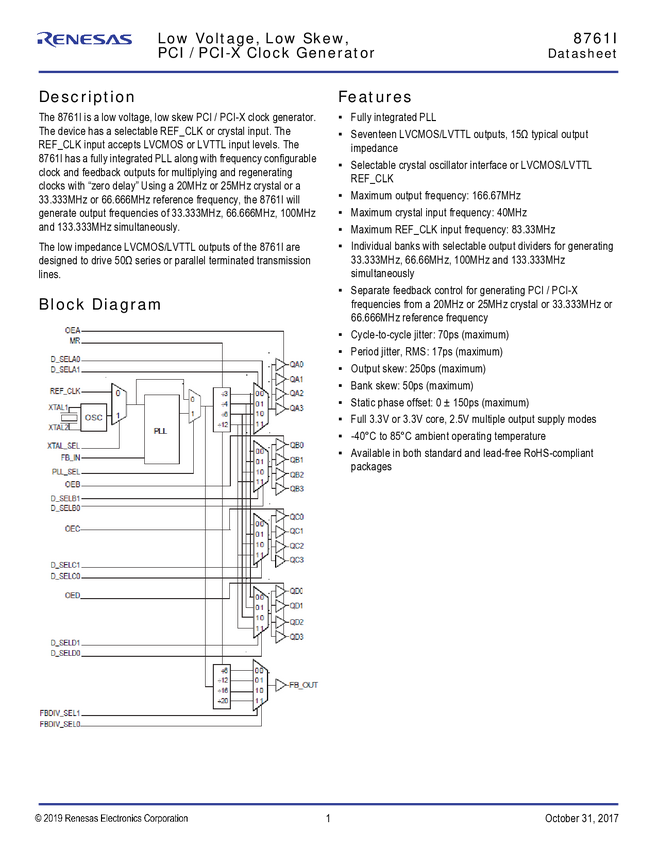 Low Voltage,Low Skew,PCI/PCI-X Clock Generator