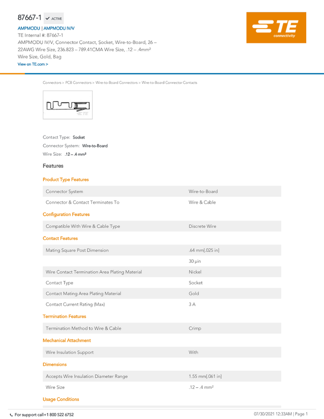 TE Connectivity 87667-1 TE AMP AMPMODU Mod IV V, 1 szt.