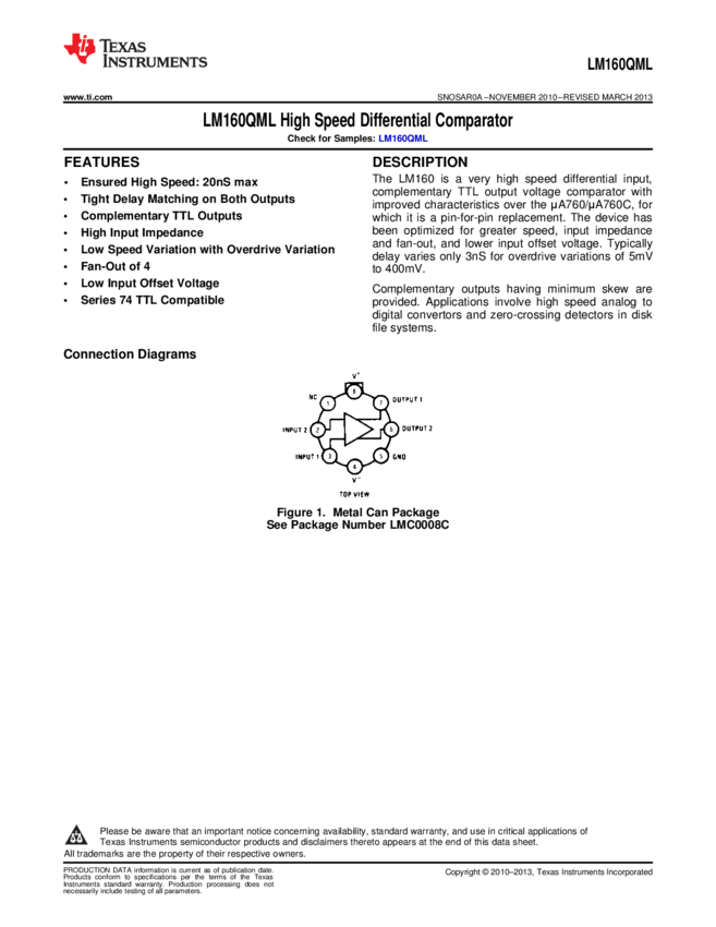 Comparator Single ±6.5V 8-Pin TO-99 Tray