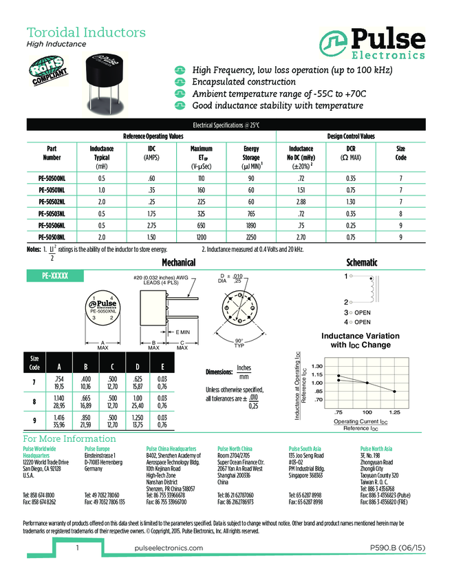 Ind High Frequency 2.88mH 20% 20KHz 250mA Pin
