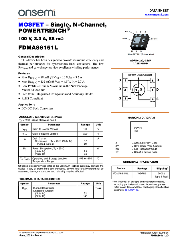 N-Channel PowerTrench<sup>® MOSFET 100V, 3.3A, 88mΩ