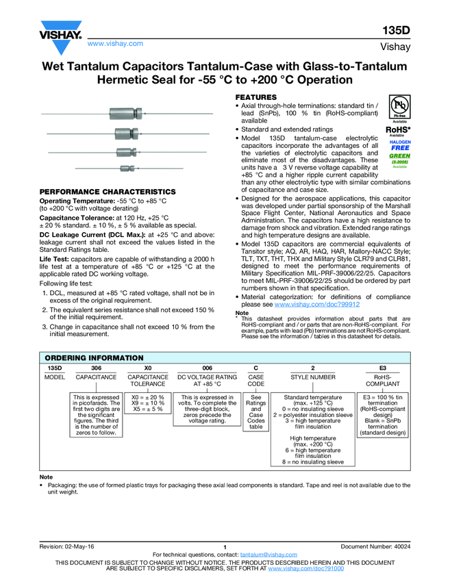 Cap Tant Wet 39uF 100V 20% (7.93 X 17.88mm) Axial Plastic Tray