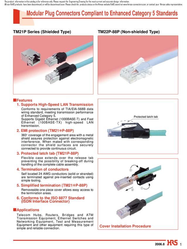 złącze męskie proste RJ45 Hirose Electronic TM21P-88P(03) 222-2862-9-03 Ilość styków: 8P8C 1 szt.
