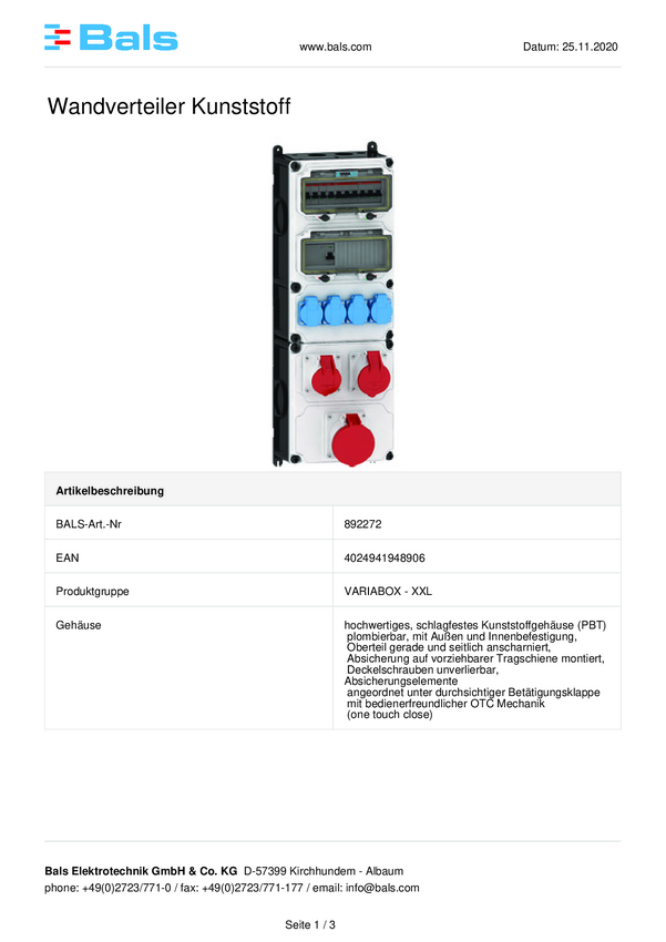Bals Elektrotechnik Rozdzielacz prądowy CEE 892272 892272