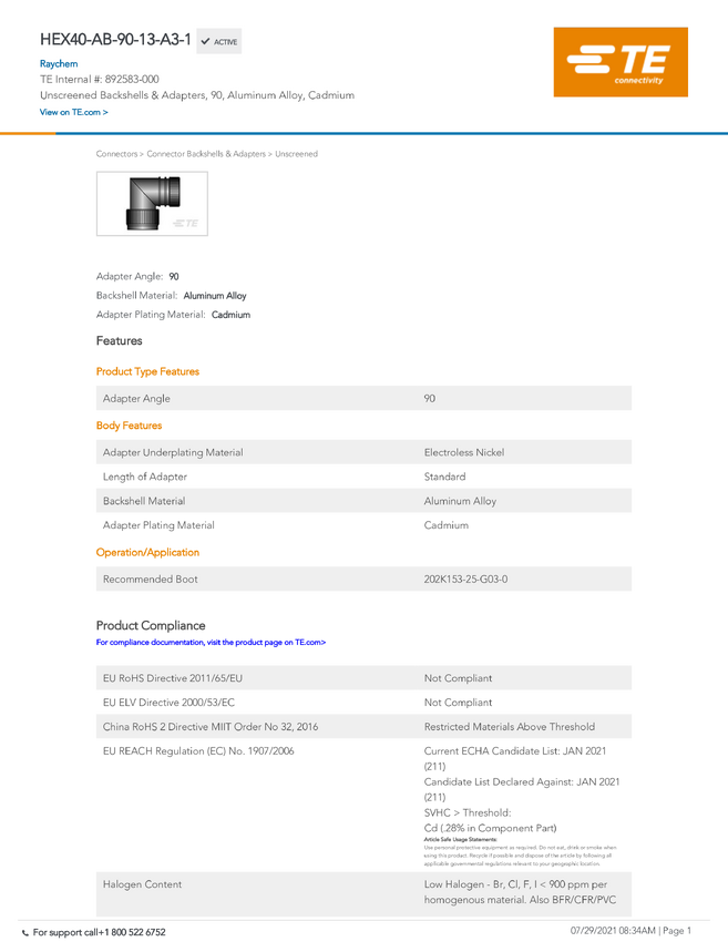TE Connectivity 892583-000 TE RAY Hexashield Products, 1 szt.