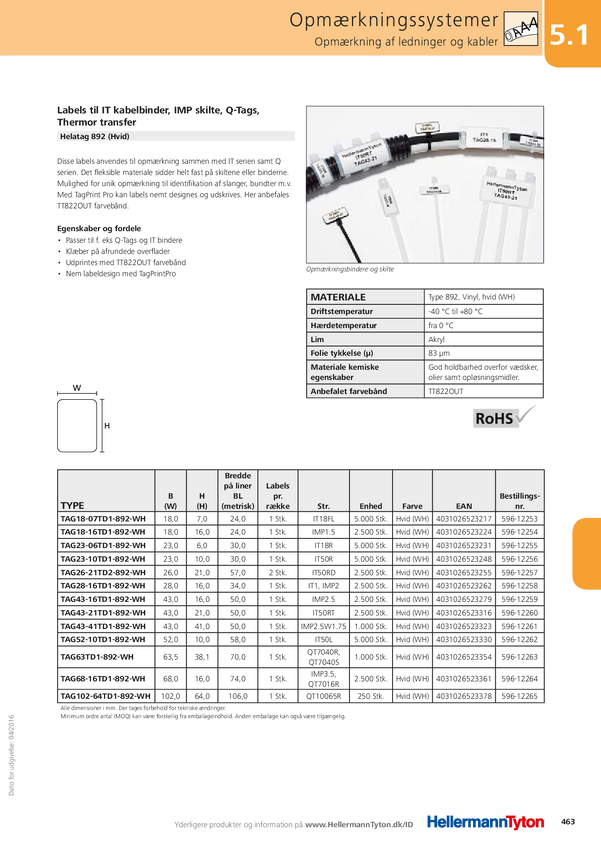 Etykieta do druku laserowego HellermannTyton TAG63TD1-892-WH-892-WH 596-12263, 1000 szt.