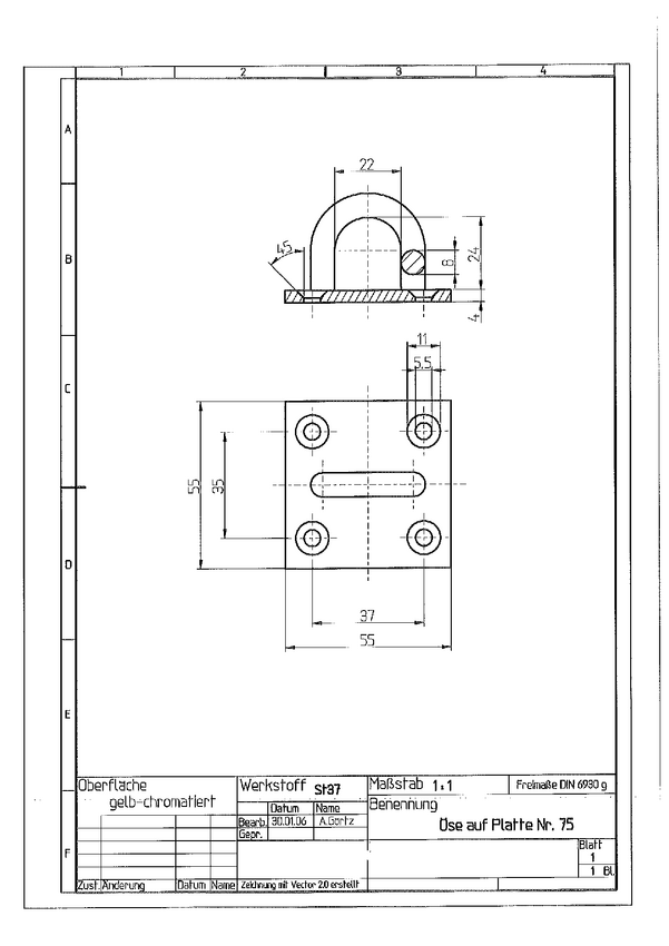 TOOLCRAFT Nr. 75 Oczko na płycie 55 mm stal, żółta ocynk. 892339 1 szt.