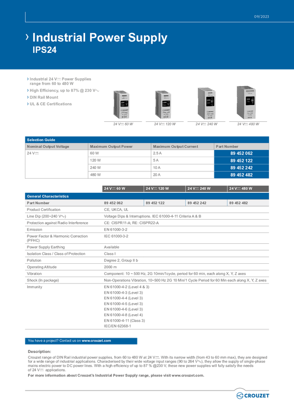 Zasilacz przemysłowy Crouzet 89452062 24 V 2.5 A 60 W
