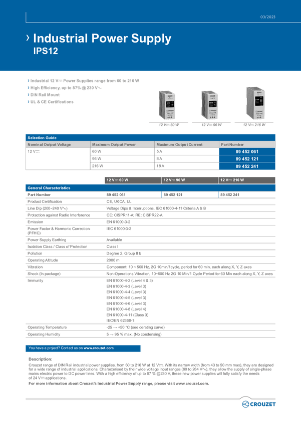 Zasilacz przemysłowy Crouzet 89452061 12 V 5 A 60 W