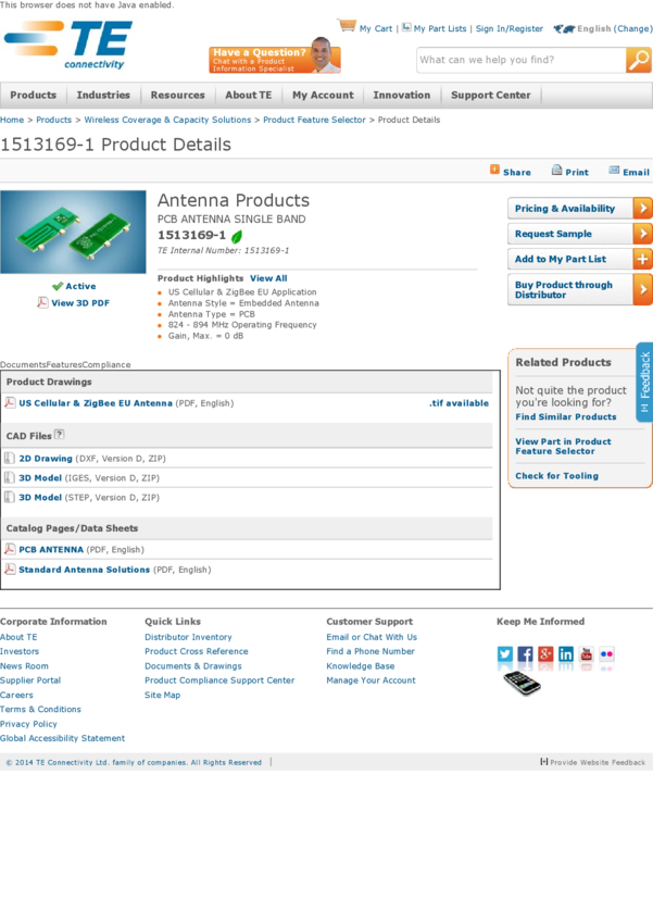 Antenna Single Band 2dB Gain 894MHz 3-Pin