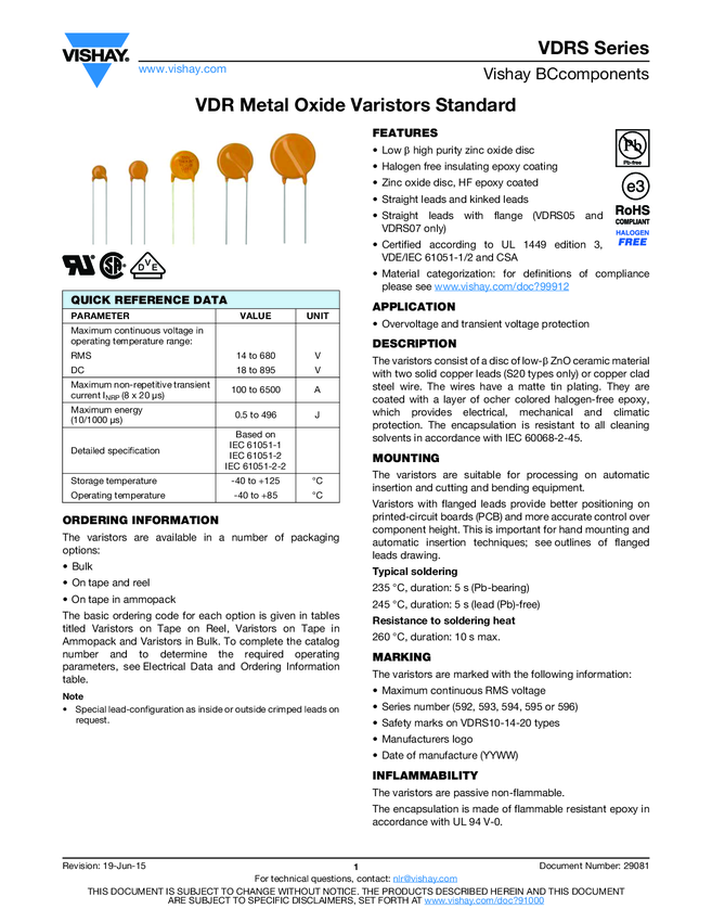 Var MOV 680VAC/895VDC 6500A 1100V Radial Bulk