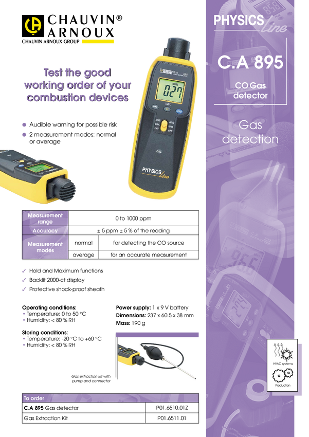 Miernik tlenku węgla Chauvin Arnoux C.A 895 0 - 1000 ppm