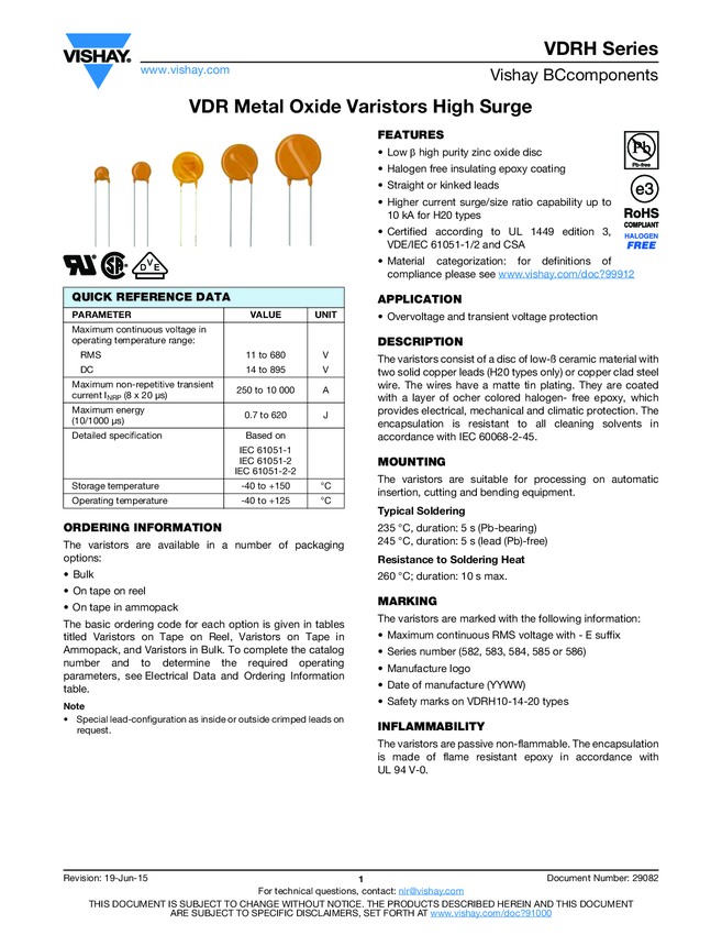 Var 680VAC 895VDC 20000A 1100V Thru-Hole Bulk