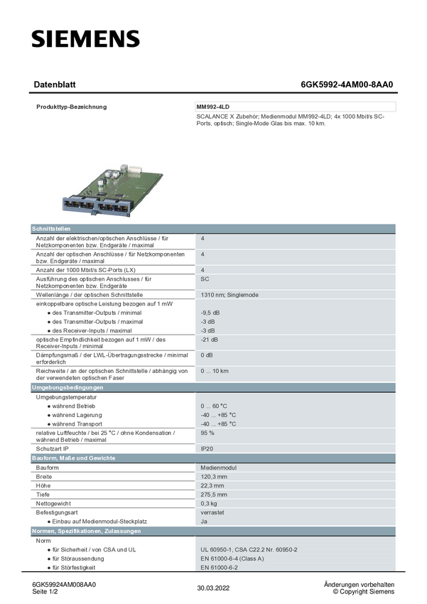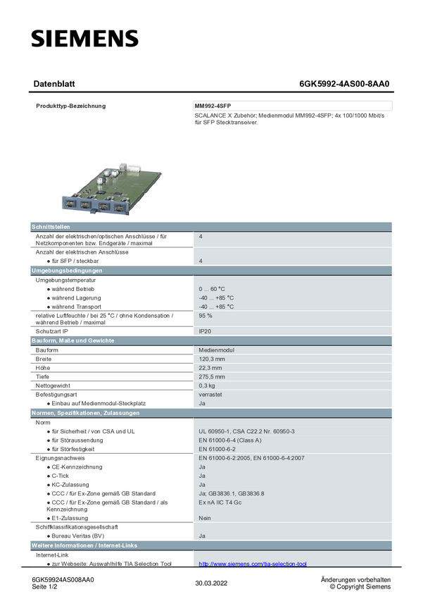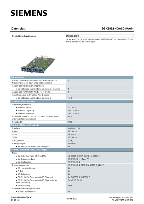 Moduł mediów Siemens 6GK5992-4SA00-8AA0 6GK59924SA008AA0