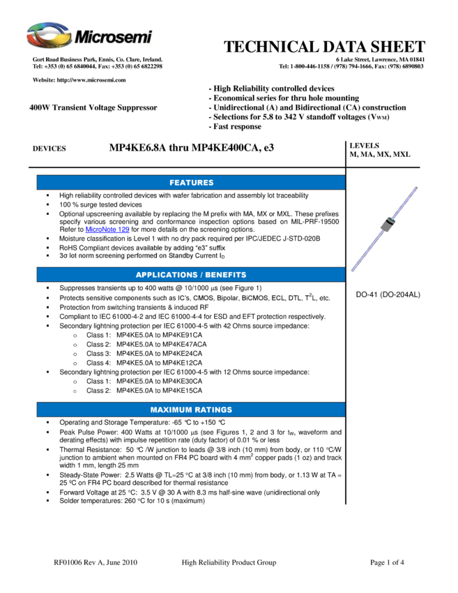 Dioda TVS Taiwan Semiconductor P4KE6.8CA P4KE6.8CA, 1 szt.