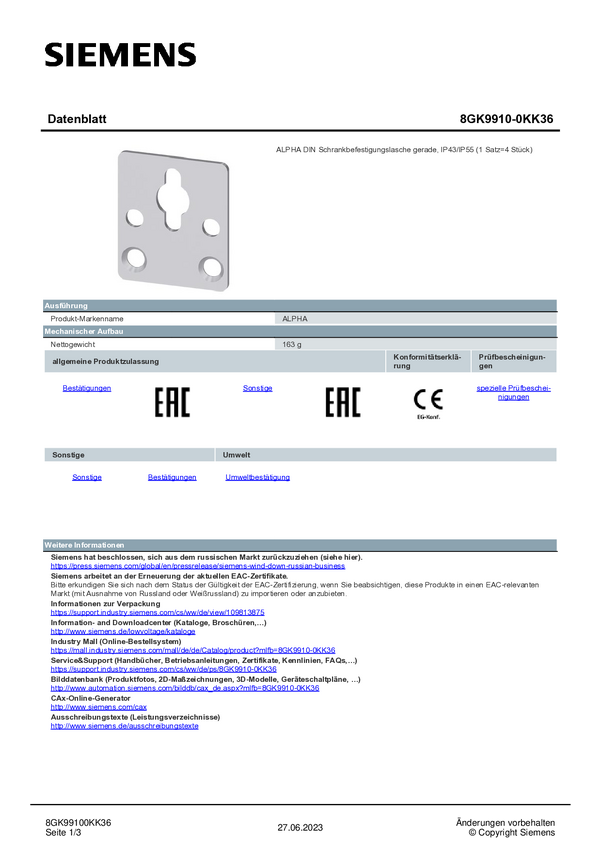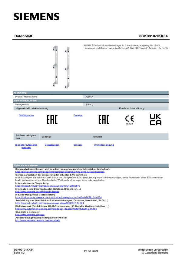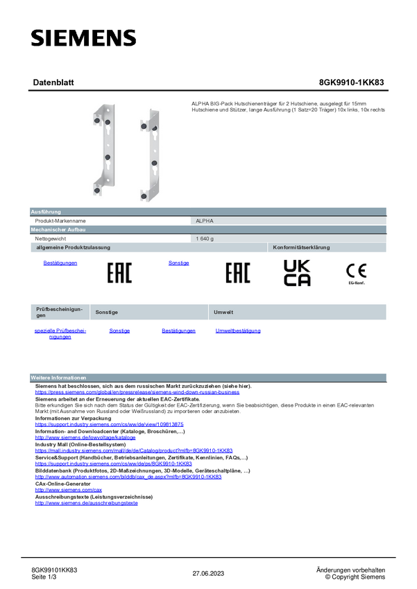 Uchwyt Siemens 8GK9910-1KK81 1 szt.