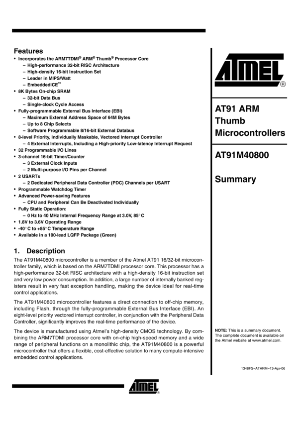 ARM7TDMI Microcontroller with 8KB SRAM, 100 Pins