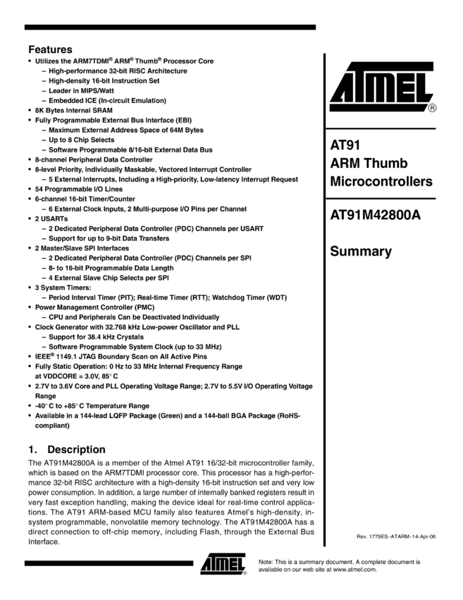 ARM7TDMI Microcontroller with 8KB on-chip SRAM, 176 Pins