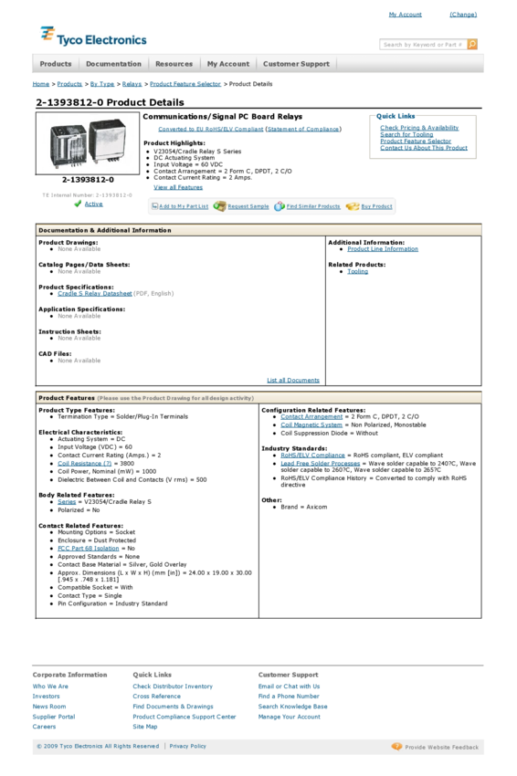 Electromechanical Relay DPDT 5A 72VDC 5.8KOhm Plug-In