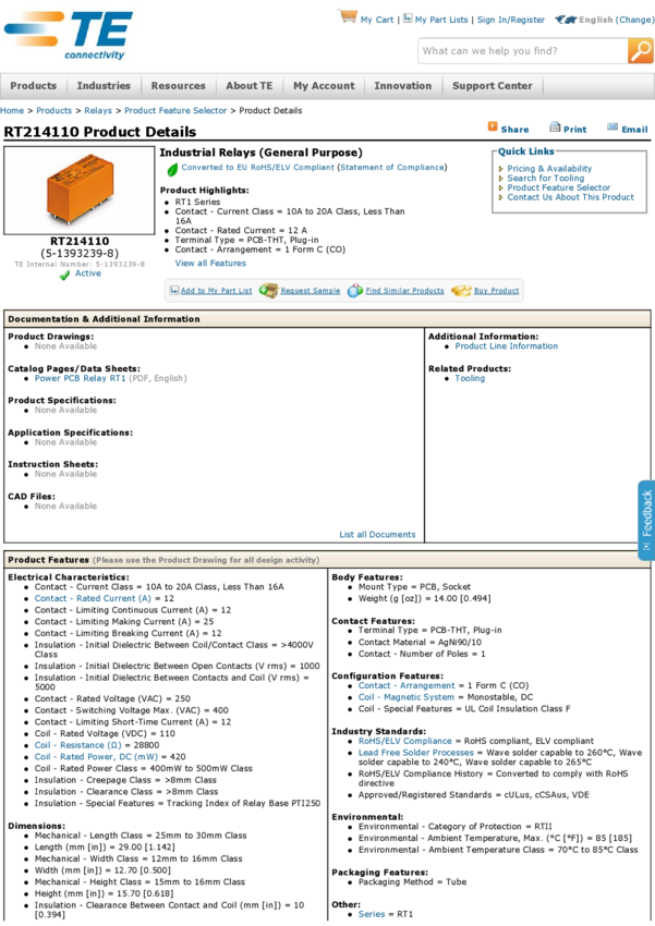 Electromechanical Relay SPDT 12A 110VDC 28.8KOhm Through Hole