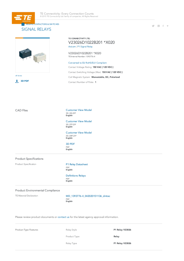 Electromechanical Relay SPDT 1A 12VDC 1.8KOhm Surface Mount