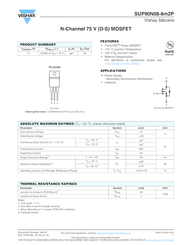 N-Channel 75 V (D-S) MOSFET