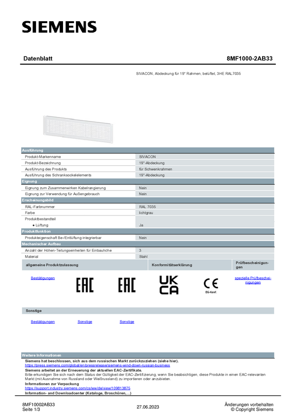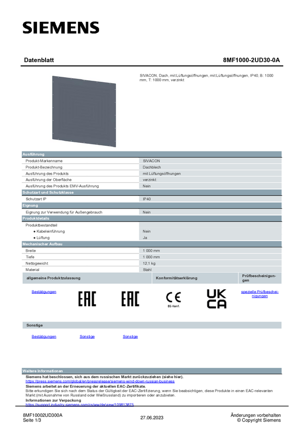 Dach Siemens 8MF1000-2UD11-0A 1 szt.
