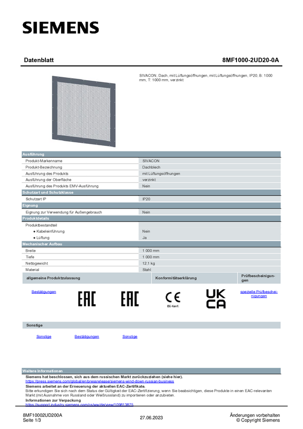 Dach Siemens 8MF1000-2UD20-0A 1 szt.