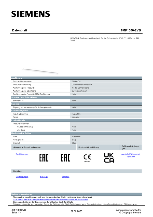 Dach Siemens 8MF1000-2UD10-0A 1 szt.
