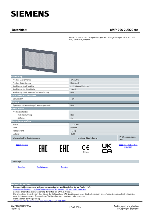 Dach Siemens 8MF1006-2UD20-0A 1 szt.
