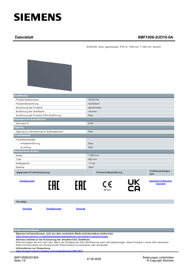 Dach Siemens 8MF1006-2UD10-0A 1 szt.