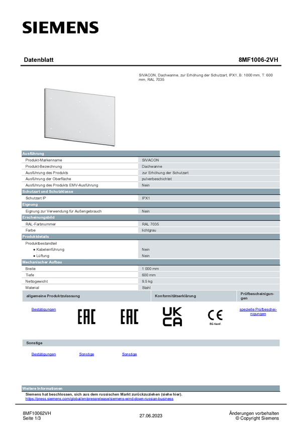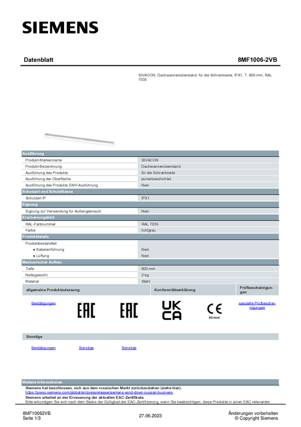 Dach Siemens 8MF1006-2VH 1 szt.