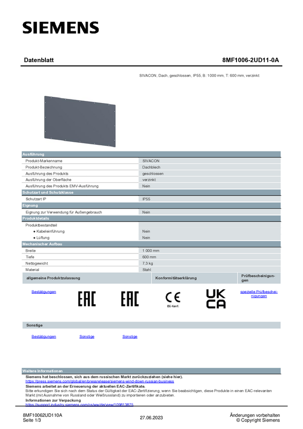 Dach Siemens 8MF1006-2UD11-0A 1 szt.