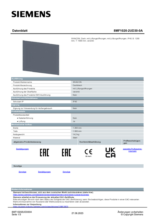Dach Siemens 8MF1020-2UD11-0A 1 szt.