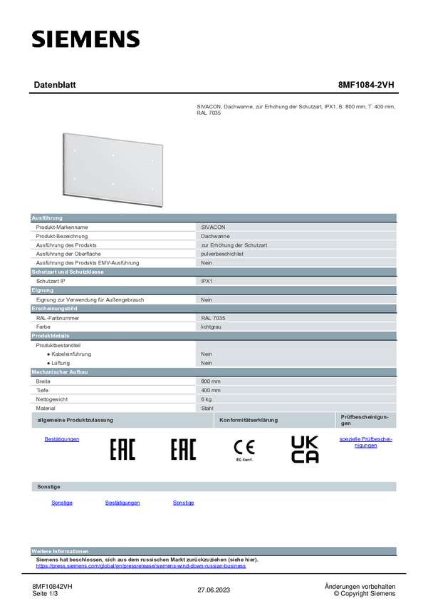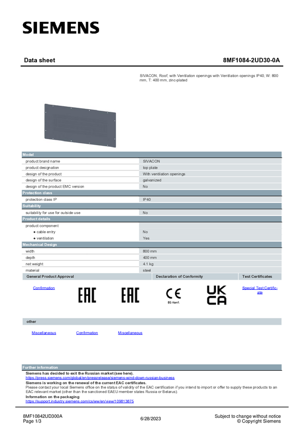 Dach Siemens 8MF1084-2VH 1 szt.