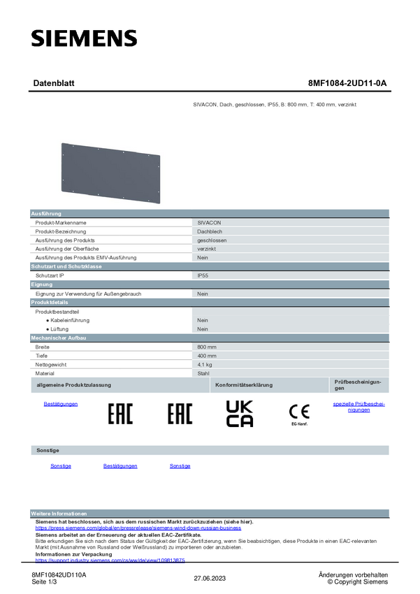 Dach Siemens 8MF1084-2UD11-0A 1 szt.