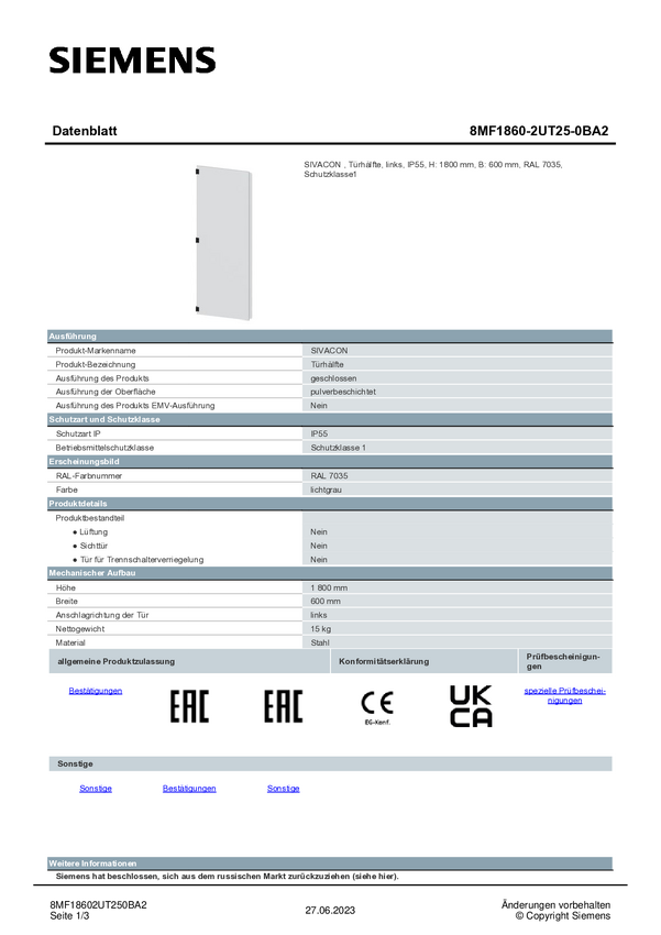 Drzwi Siemens 8MF1860-2UT15-0BA2 1 szt.