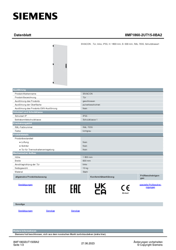 Drzwi Siemens 8MF1860-2UT15-1BA2 1 szt.