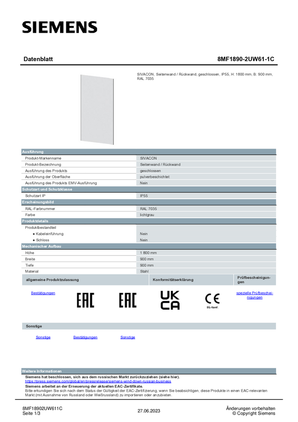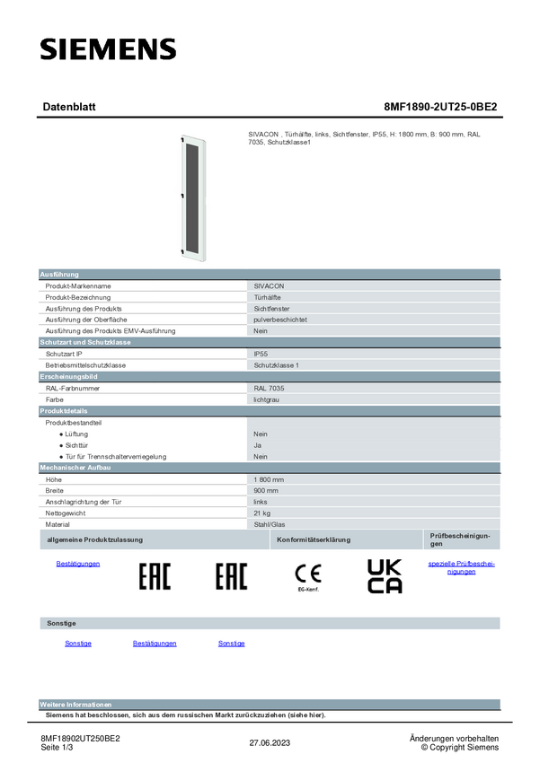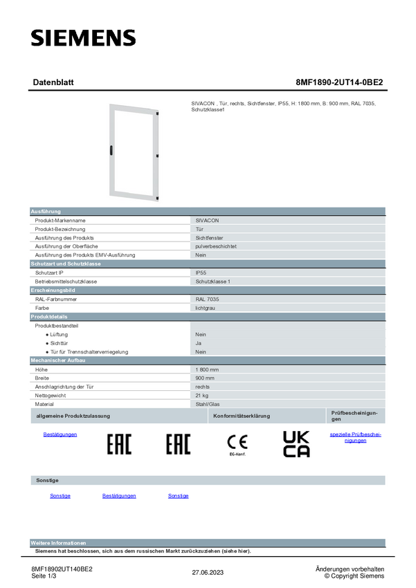 Drzwi Siemens 8MF1890-2UT14-0BE2 1 szt.