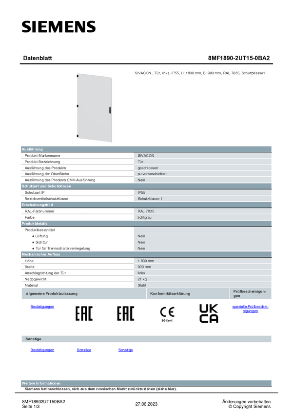 Drzwi Siemens 8MF1890-2UT15-0BA2 1 szt.
