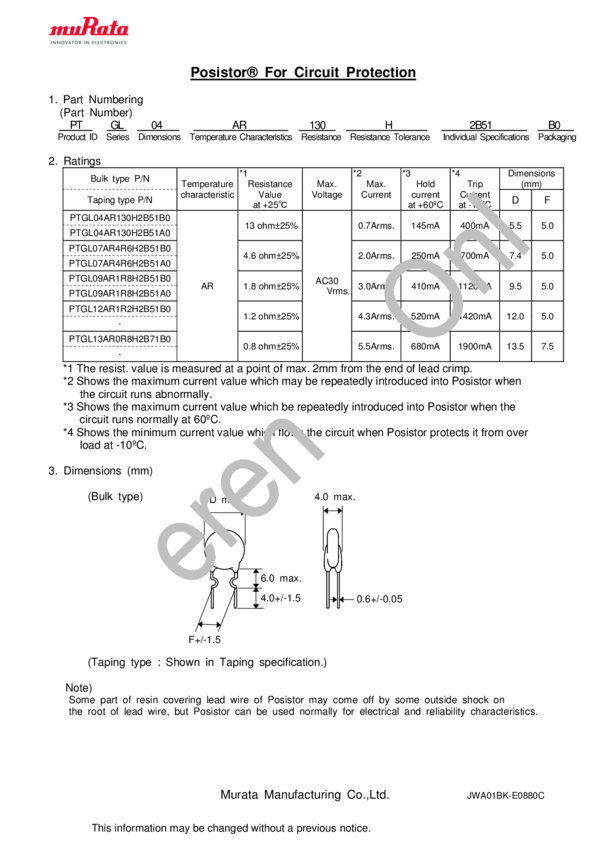 Thermistor PTC 6.8Ohm 10% 2-Pin Radial Bulk