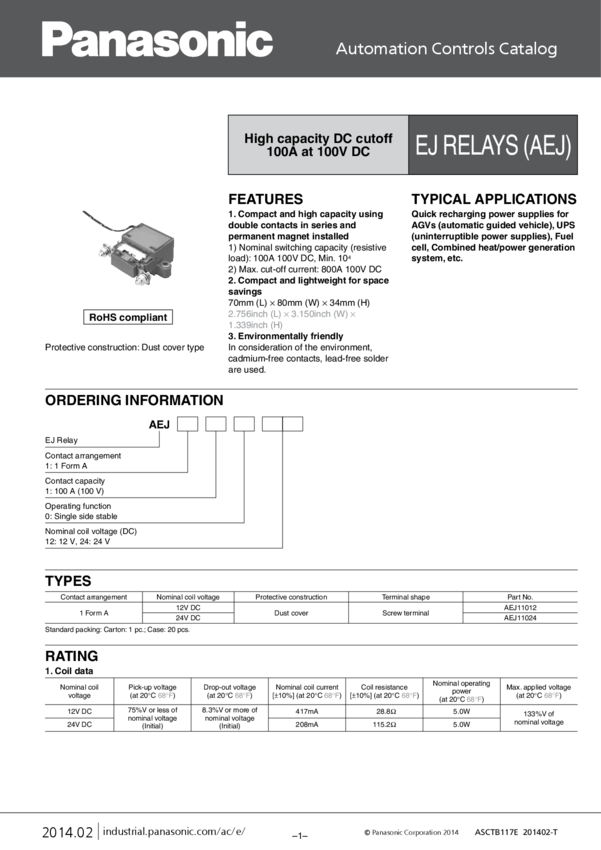 Electromechanical Relay SPST-NO 100A 12VDC 28.8Ohm