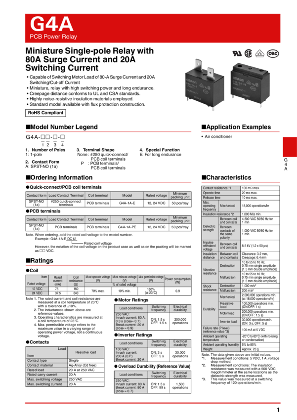 Electromechanical Relay SPST-NO 20A 5VDC 27.8Ohm Through Hole